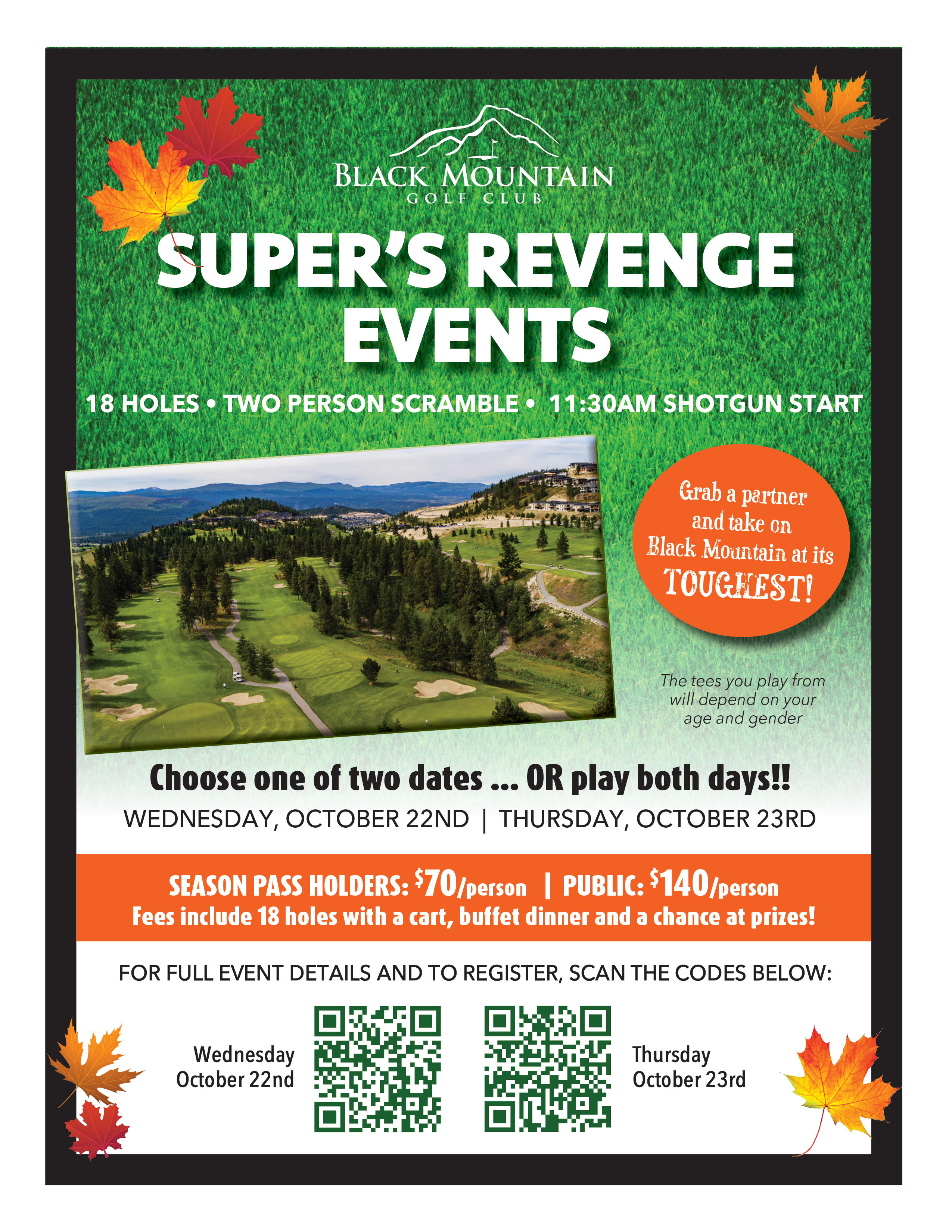 *Includes 18 holes with Cart, Buffet Dinner & Chance at Prizes
