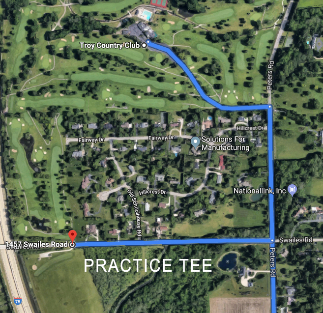 The practice tee will be open by 7:30am and is Located off the Property on Swailes Road (Link to Location) and is accessible only by car.