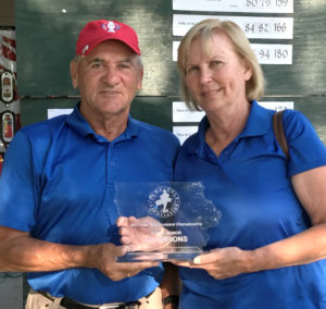 In the Super Senior Division, Jeanette and Raymond Fredericksen (pictured above) defeated Char and Steve Maaske on the first hole of a playoff for the title. The Fredericksens posted consistent rounds of 79-80 (+15). Opening co-round leaders, Carroll and John Dethrow finished third at +18.