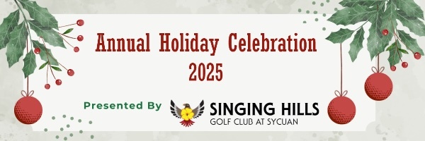 Our Annual Holiday Celebration presented by Singing Hills Golf Club at Sycuan has arrived! Join us at Singing Hills to Celebrate, Recognize and Give at our final event of the year.