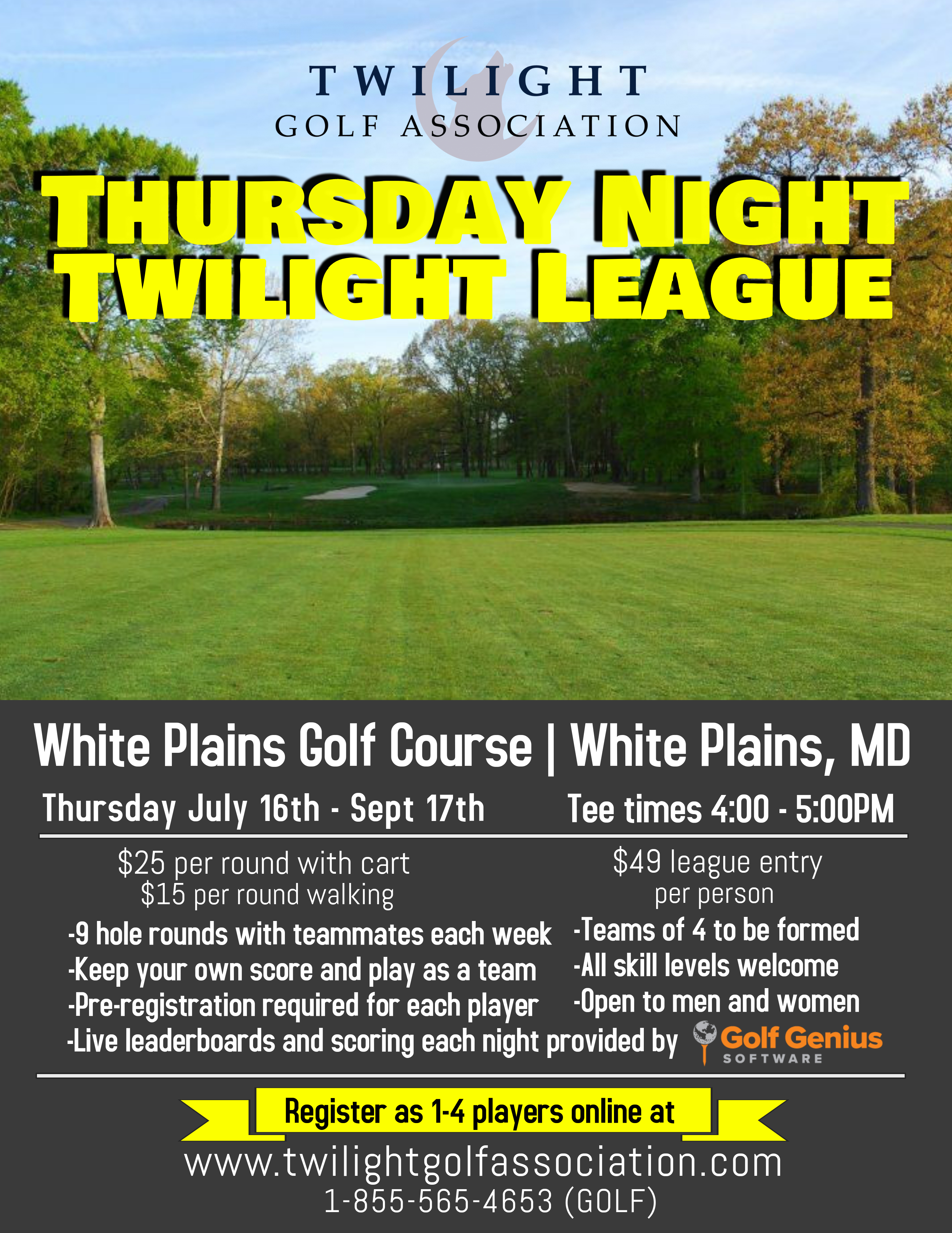 For more information e-mail play@twilightgolfassociation.com or call 1-855-565-4653 (GOLF).