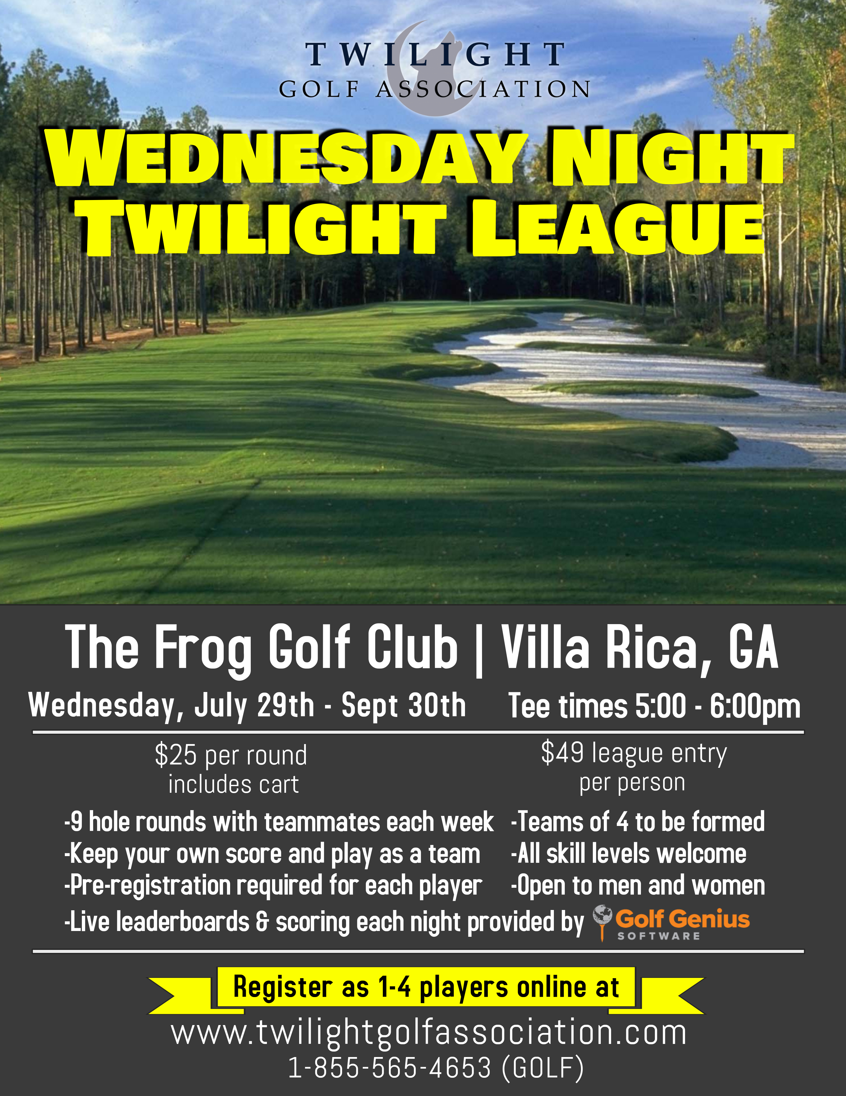 For more information, e-mail play@twilightgolfassociation.com or call 1-855-565-4653 (GOLF).