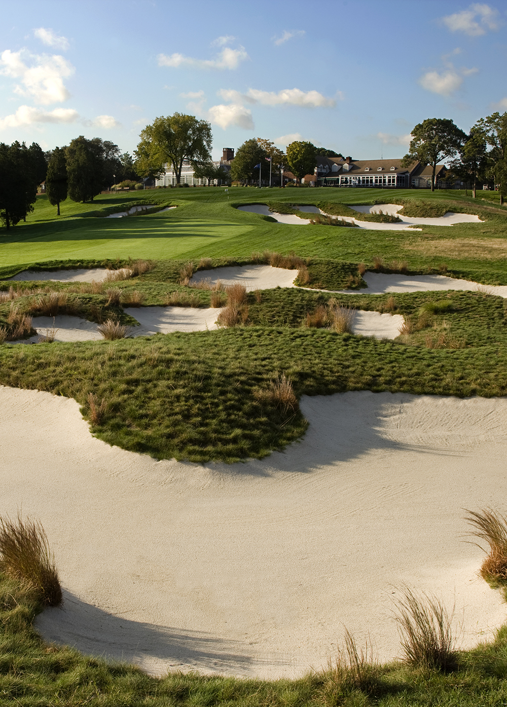 The Black Course is the most difficult of the five courses and presents a true challenge for players of all abilities. The course is walking only and has one of the highest slope ratings in the northeast at 152 with a course rating of 78.1, which is why it is recommended to only be played by low-handicap golfers. It was one of the last courses designed by Tillinghast and is said by many to be his finest work. The narrow fairways, high rough, well-placed bunkers and small elevated greens help to make it an extremely challenging course. From the Championship tees, the course plays to a par 71 and is a lengthy 7,465 yards. The bunkers are strategically placed to remind players that they will certainly be penalized for finding the sand. Many of the greenside bunkers are big, with slopes down extending down to their bottom.