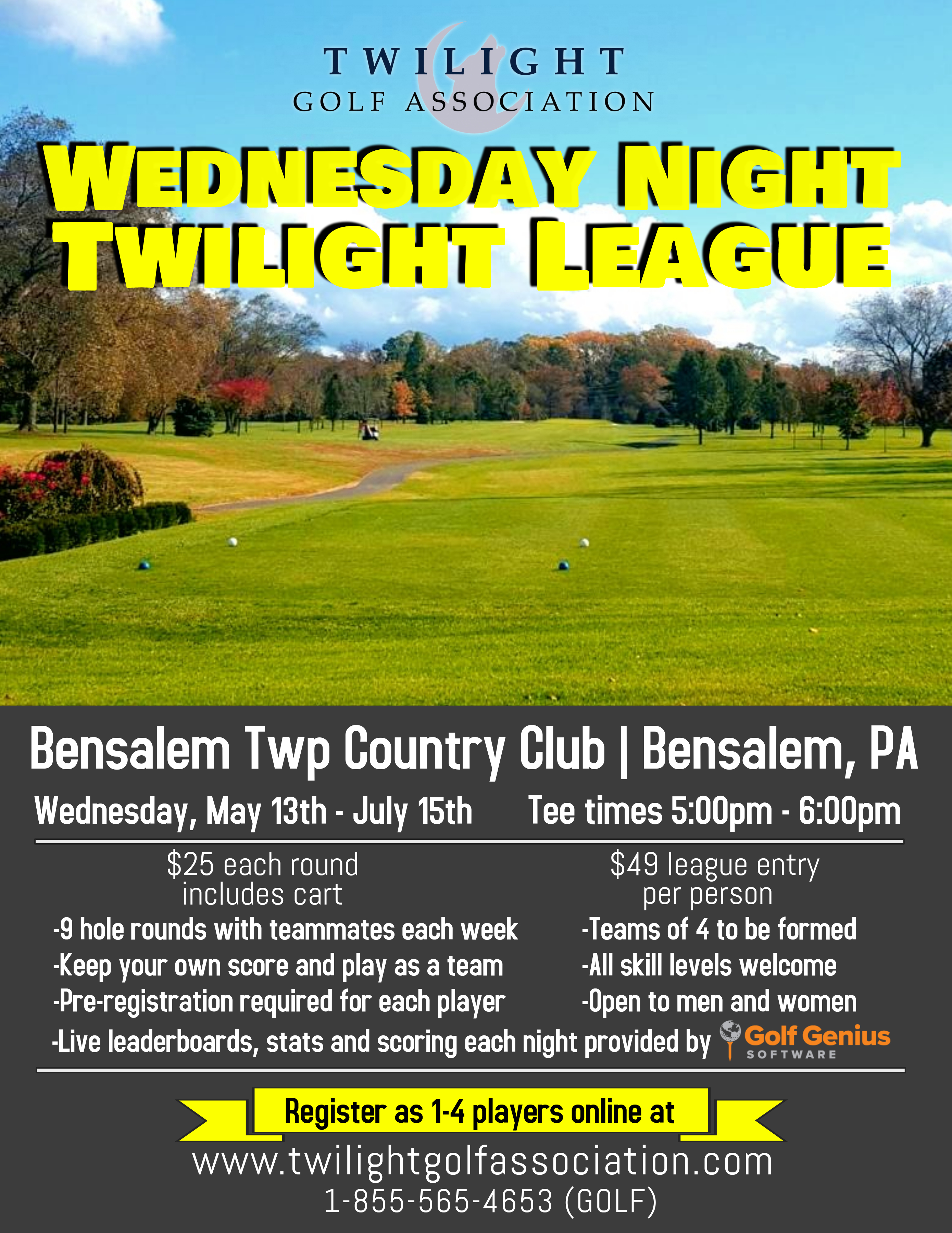 For more information, e-mail play@twilightgolfassociation.com or call 1-855-565-4653 (GOLF).