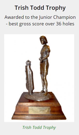 - The Junior Champion is presented with the Trish Todd trophy having achieved the Best Gross score over the 36 holes.
