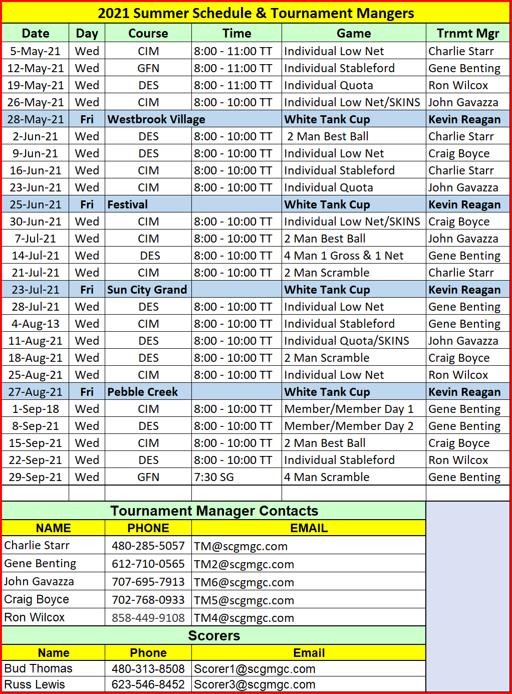Chelsea Tee Times SCG Course Calendar