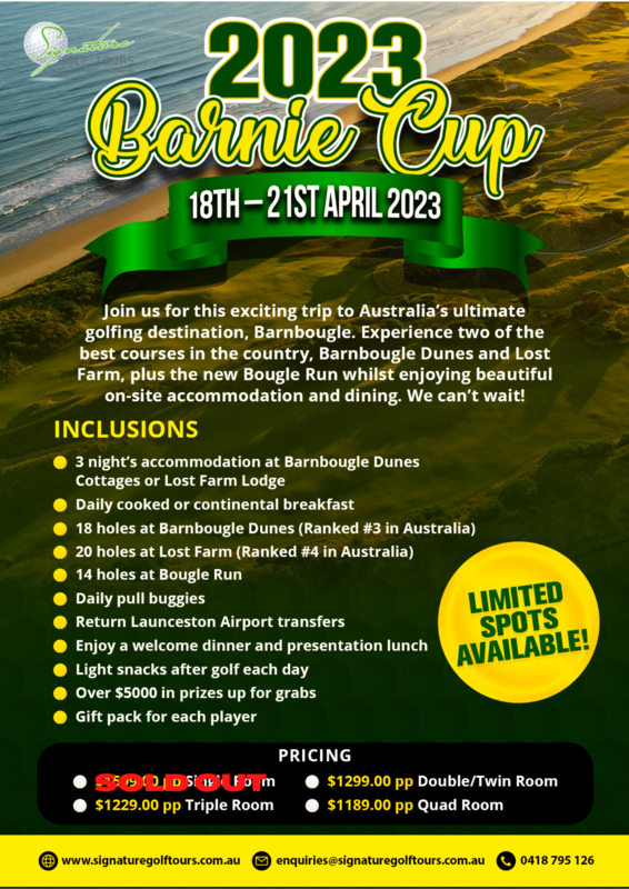 * 18 holes at Barnbougle Dunes (Ranked #3 in Australia)