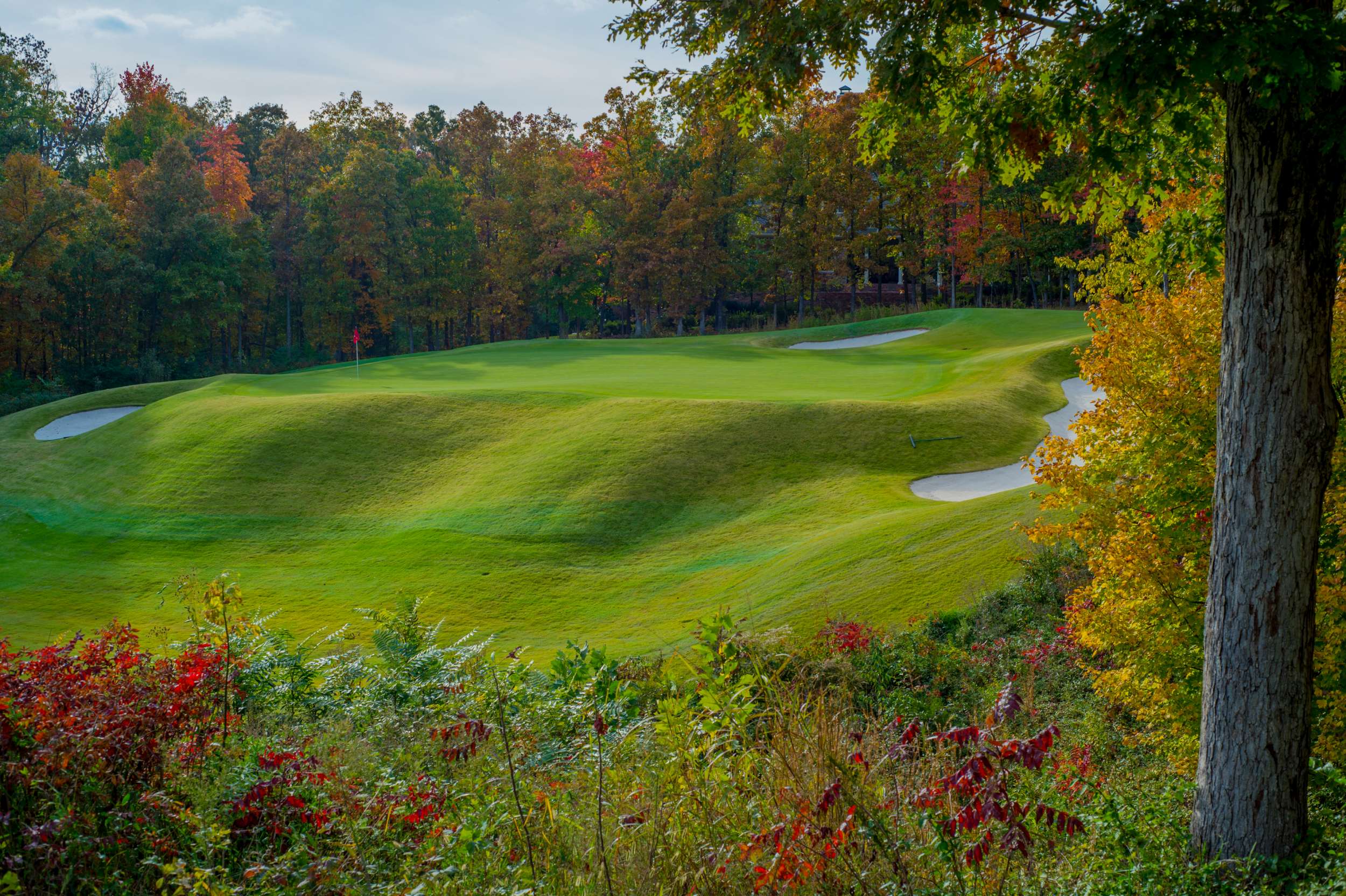 The impeccably maintained course stretches to over 7,900 yards from the back tees and plays through two distinct land forms the Clear Creek floodplain and a plateau that rises to 65 feet above the floodplain where it’s bisected by a series of ravines. Both the outward and inward nines climb up and down between the two topographies, creating drama and variety on each hole. The course was originally designed by architect Robert Trent Jones, Jr. with a redesign recently completed by noted architect Kyle Phillips.