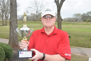 Palmer Flight:  Stating that he hasn't been able to adjust his game to a lower weight class, Albuquerque, NM, traveler Dan Frampton, sure didn't show it.  Frampton, with a pair of birdies on the round, played his final nine holes, in even par, to pick up the Championship, three strokes clear.  Beaumont, TX, player Scott Mays with a birdie of his own.  Three strokes out of second, the pair of Terrance Ream, of Reno, NV, and Houston, TX, member Rafael Rivero, split the third place honors.