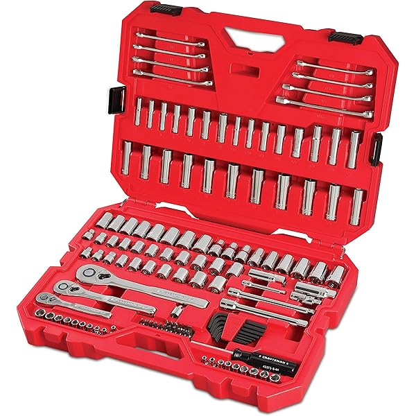 | CRAFTSMAN 135-Piece Standard (SAE) and Metric Polished Chrome Mechanics Tool Set (1/4-in; 3/8-in; 1/2-in) with Hard Case |  |